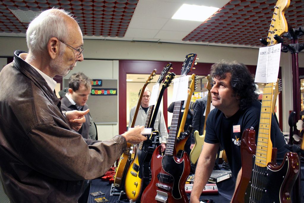 Die Vintage-Guitar-Show in Oldenburg ist ein Mekka für Musiker, Sammler und Gitarren-Liebhaber. Am vergangenen Wochenende (02./03.11.2013) haben dort 41 Aussteller aus Deutschland, Italien, Holland, Ungarn und Serbien rund 1.500 Instrumente gezeigt. Dr. Gerald Koch und Dr. Hans-Georg Richter vom Thünen-Institut für Holzforschung aus Hamburg hatten jedes dritte in der Hand.