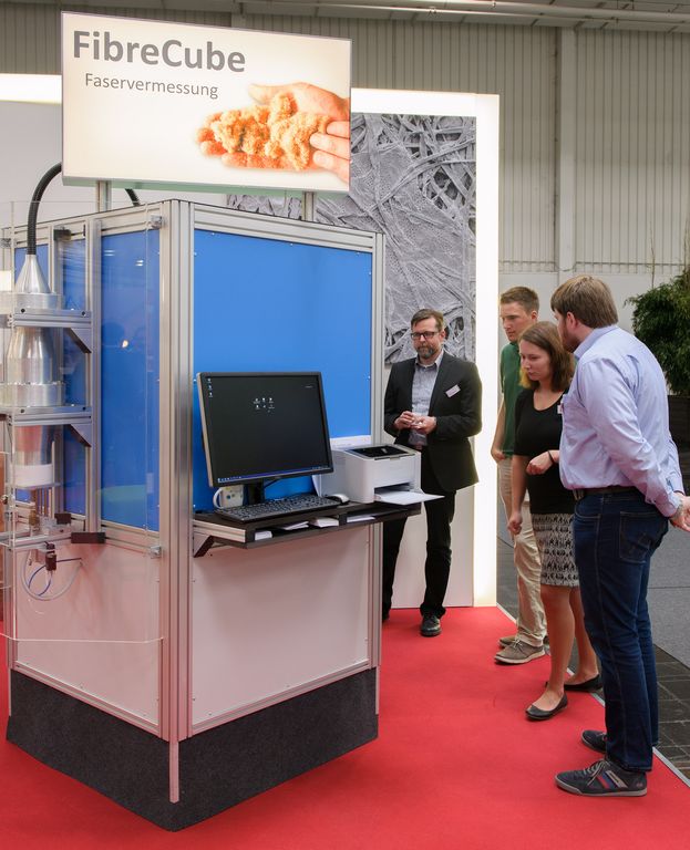 Zum anderen werden wir unter dem Titel „Die Vermessung der (Faser-)Welt“ LIVE auf dem Messestand Fasern von MDF-Platten vermessen. Hierfür kommt der FibreCube zum Einsatz – ein innovatives System, mit dem sich reproduzierbar und innerhalb weniger Minuten mehrere hunderttausend Fasern vermessen lassen. Der FibreCube wurde am Thünen-Institut für Holzforschung zusammen mit Partnern entwickelt, er übertrifft die derzeit verfügbaren Messsysteme durch seine Leistungsfähigkeit und technische Detaillösungen. Messebesucher aus Industrie und Forschung sind eingeladen, eigene Fasern mitzubringen und vor Ort von uns vermessen zu lassen.