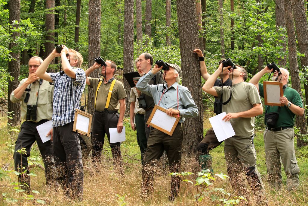 Um sicherzustellen, dass länderübergreifend vergleichbare Rohdaten generiert werden, kommen die Inventurleiter der einzelnen Bundesländer vor den Erhebungen zu einem Abstimmungskurs zusammen. In diesem Jahr hatten der Landesbetrieb Forst Brandenburg, das Thünen-Institut für Waldökosysteme und das Landeskompetenzzentrum Forst Eberswalde dazu in den Staatswald nach Chorin (Brandenburg) eingeladen. Dort bewerteten die Experten in jeweils drei Durchgängen pro Baumart gemeinsam und in Kleingruppen die Baumkronen von je 25 ausgesuchten Kiefern, Fichten, Buchen und Eichen. Dies sind die vier häufigsten Baumarten in Deutschland, für die bei der Waldzustandserhebung getrennte Ergebnisse ausgewiesen werden. Alle übrigen werden bei der Auswertung zu den Gruppen „sonstige Nadelbäume“ und „sonstige Laubbäume“ zusammengefasst.