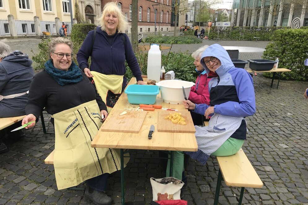 Ganz nebenbei erhalten die Teilnehmenden an mehreren Info-Ständen, zum Beispiel vom Thünen-Institut, den Solawis Dahlum und Landwandel, Greenpeace und Futter Teresa, Einblicke rund um den Schwerpunkt Lebensmittel, etwa zur sorgsamen Erzeugung, zur wertschätzenden Zubereitung und zur Vermeidung von Lebensmittelabfällen. Themen, die uns alle angehen, denn rund 12 Millionen Tonnen Lebensmittel werden allein in Deutschland jedes Jahr weggeworfen. Mehr als die Hälfte davon geht dabei auf das Konto der privaten Haushalte. Die Veranstalter*innen geben mit praktischen Tipps Impulse für einen nachhaltigeren Ernährungsstil.