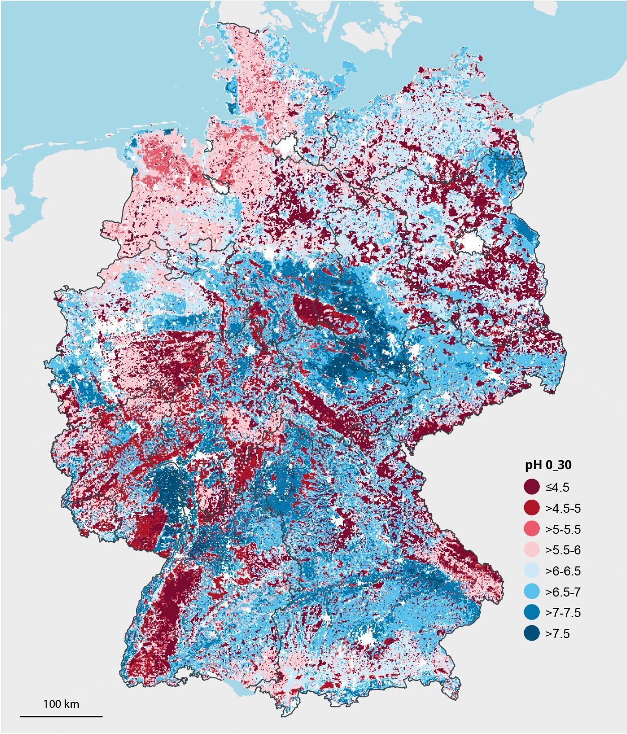 pH-Werte deutscher Böden auf Wald- und Agrarflächen