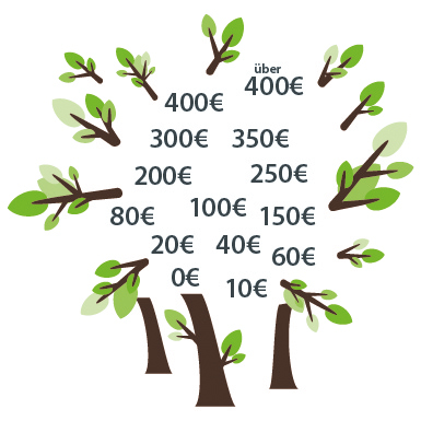 Bitte überlegen Sie einmal genau, wie viel Sie gerade noch bereit wären pro Person für eine solche Jahreskarte zu bezahlen. Suchen Sie sich einen Euro-Betrag aus der nebenstehnden Grafik aus.