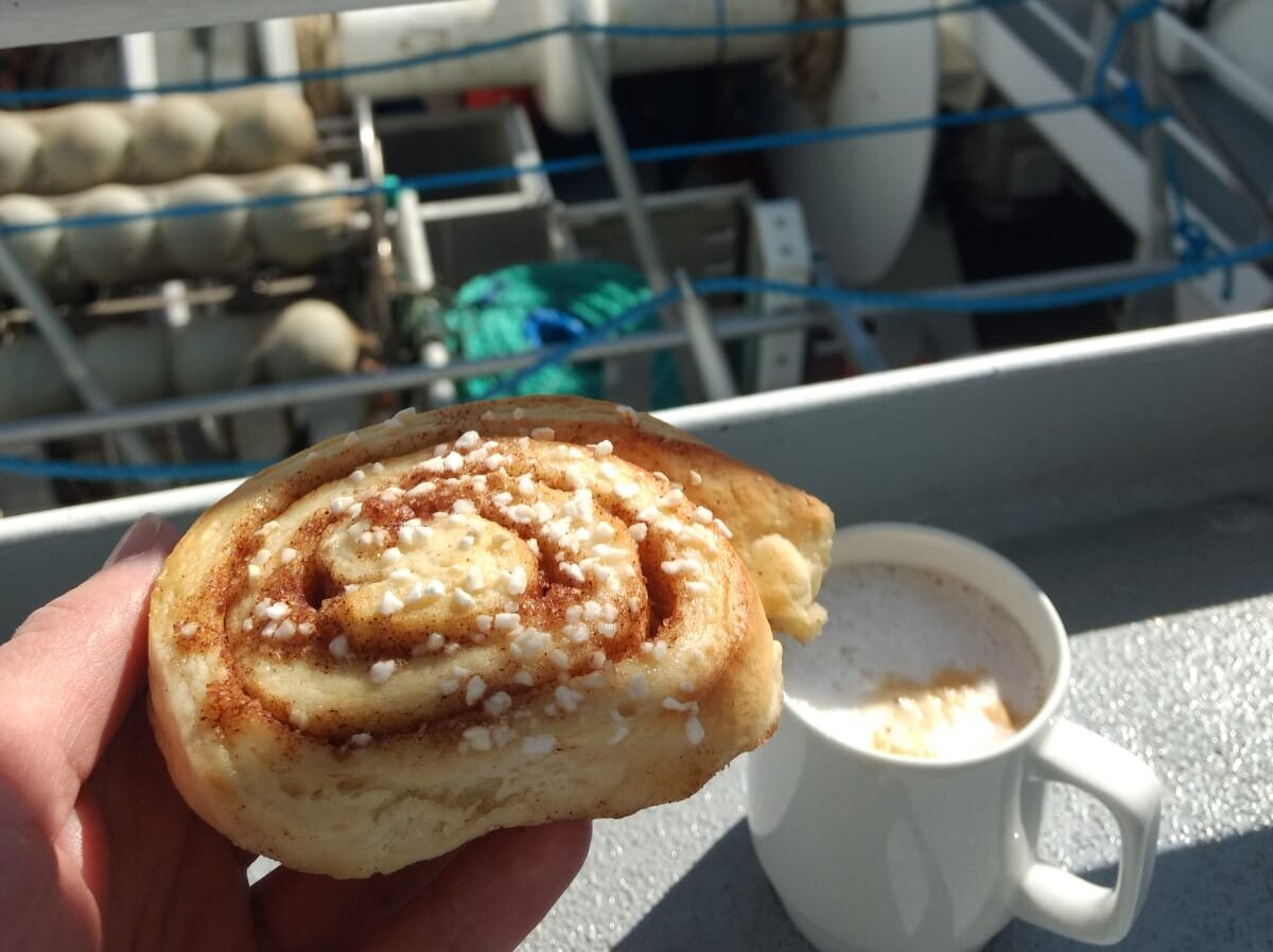 The atmosphere on board is very good, we laugh, have nice fellowships and share experiences with each other. Today I baked "Kanelbullar" (cinnamon buns), which was very much appreciated by everyone on board.