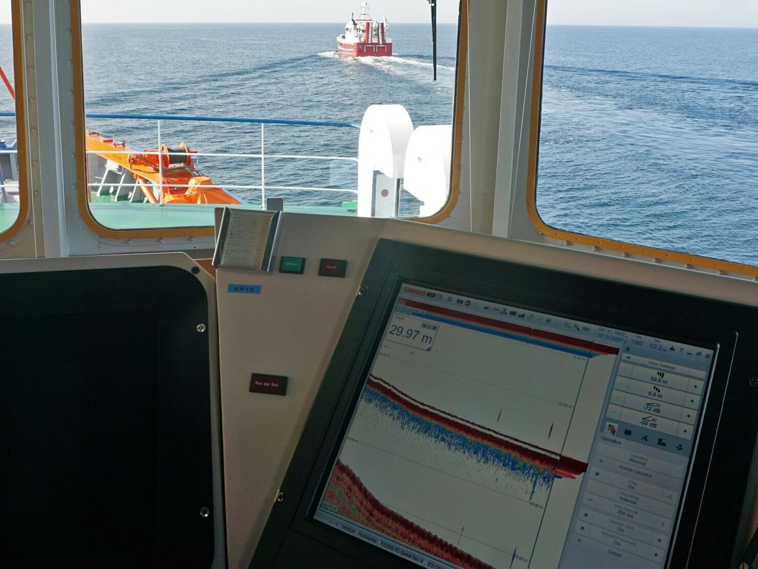 Aber auch jetzt, ein Jahr später, ist die Arbeit noch nicht abgeschlossen. Wenn ein Akustiksurvey mit einem anderen Schiff durchgeführt wird, kann es sein, dass die Kontinuität der Zeitserie verändert wird. Konkret bedeutet das, dass unterschiedliche Schiffe verschiedene Scheuchwirkungen auf die Fischschwärme haben können, wenn sie zum Beispiel unterschiedlich laut sind. Um dies quantifizieren und gegebenenfalls mit einem Koeffizienten korrigieren zu können, werden Interkalibrierungen zwischen Schiffen durchgeführt.