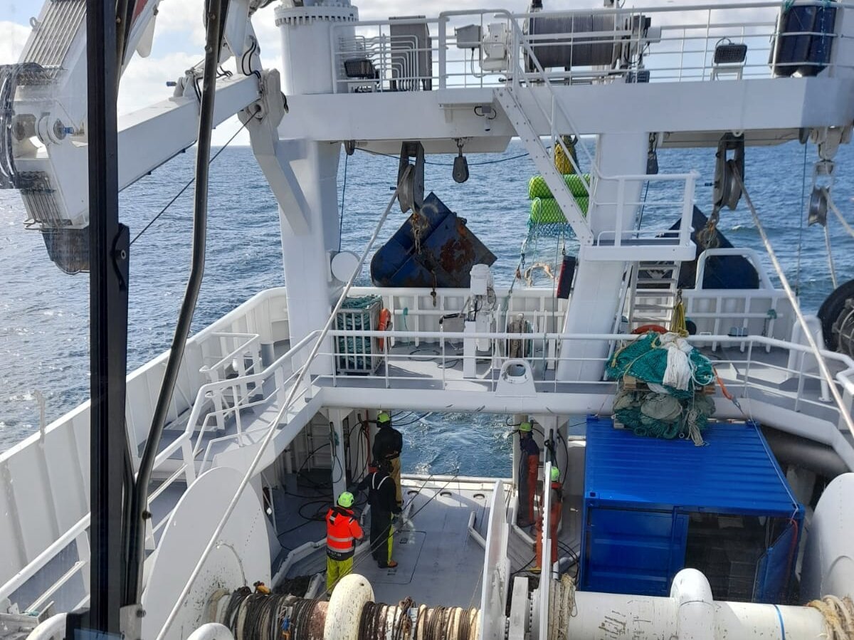Mehrfach fiel unser dafür genutztes Forschungsschiff, die Walther Herwig III, aus – so auch kurzfristig in diesem Jahr. Daher nutzen wir erstmals ein professionelles Fischereifangschiff als Ersatz, das für wissenschaftliche Surveys ausgestattet wurde.