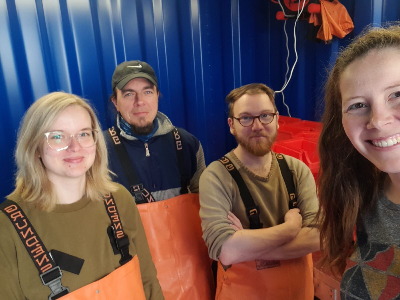 Normalerweise sind für diesen Survey bis zu acht Wissenschaftler an Bord. Durch den begrenzten Platz auf dem Schiff sind wir dieses Jahr nur zu viert: Mario Koth (Thünen Ostseefischerei) leitet das Fischlabor, Svea Winning (Thünen Seefischerei) ist unsere Akustikerin, arbeitet aber auch genauso gerne im Labor. Marcel Bächtiger (Uni Hamburg) ist ein sehr erfahrener studentischer Hilfswissenschaftler, der uns schon seit einigen Jahren auf den Seereisen begleitet. Dazu noch ich als Fahrtleiterin.