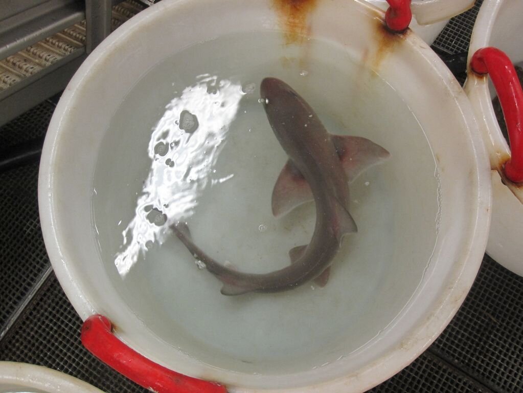 Ein typischer Tag an Bord ist geprägt von Sortieren, Messen und Zählen. Wir sind alle gespannt, wenn die Klappe aufgeht und der erste Fang des Tages reinkommt. Viele der Fischarten sind üblich für die Stationen, trotzdem gibt es in jeder Probe auch außergewöhnliche Fauna. Zusätzlich zu den Standardfängen von Kliesche (Limanda limanda), Grauem Knurrhahn (Eurtigla gurnadus), Makrele (Scomber scombrus) und Scholle (Pleuronectes platessa) gehen manchmal auch Blondrochen (Raja brachyura), Grauer Glatthai und Dornhai ins Netz. Wir streben fünf bis sechs Fänge pro Tag an, die uns für etwa 12 Stunden beschäftigen. Danach sitzen wir meistens zusammen im Fernsehzimmer – in den vergangenen Tagen zur trilateralen Unterstützung der Fußballmannschaften bei der EM 2016.