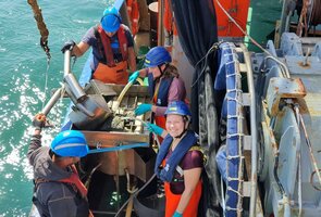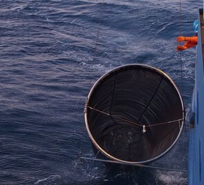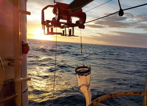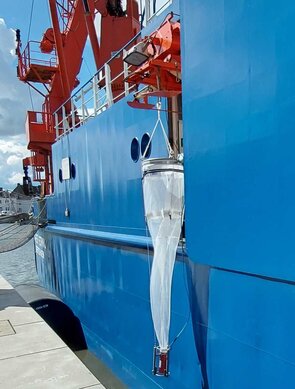 In der südlichen Nordsee haben wir tagsüber Planktonfänge mit einem sogenannten WP2-Netz durchgeführt, wobei das Netz bei stehendem Schiff vertikal durch die Wassersäule gezogen wird. Diese Proben ergänzen unser multidisziplinäre Beprobung und dienen dazu, die Diversität und räumlich aufgelöste Abundanz des Mero-Zooplanktons zu erfassen, also die Jungstadien der Organismen, die nur ihre frühe Lebensphase im Plankton verbringen. Die Planktonproben werden später an Land mikroskopisch und auch genetisch untersucht und im Rahmen eines Drittmittelprojekts ausgewertet.