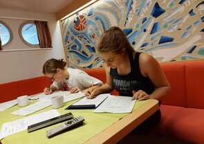 Theresa: Es ist schön, einmal komplett weg zu sein für einen ganzen Monat. Auch der Austausch mit der Bordbesatzung ist ganz interessant.