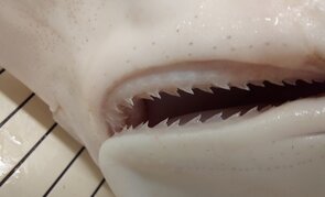 Eine dieser Arten wollen wir euch heute vorstellen: Der Hundshai Galeorhinus galeus, aus der Familie der Glatthaie, ist erst seit kurzem unter Naturschutz gestellt worden. Er ging uns überaschenderweise ins Netz und wurde nach einer schnellen Messung von Länge und Gewicht sowie ein paar Bildaufnahmen rasch wieder lebendig ins Meer zurückgelassen. Für alle, die mehr über dieses schöne Tier wissen wollen, empfiehlt sich folgender spannender Artikel auf der Thünen-Webseite.
