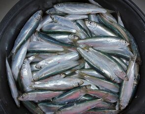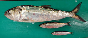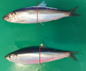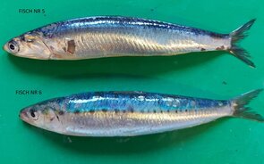 Wie wir Heringe und Sprotten auseinanderhalten, könnt ihr gut in den Bildern erkennen. Denn das ist unsere erste Aufgabe. Danach wiegen wir die nach Arten getrennten Fische und messen die Längen. Auch werden Otolithen bei einigen Fischen wie beispielsweise Wittlingen entnommen, damit im Labor das Alter bestimmt werden kann. Von manchen Arten haben wir so viele Exemplare, dass wir eine Unterprobe nehmen und es am Ende hochrechnen.
