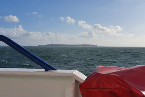 Nach wenigen Stunden passieren wir bereits Helgoland, in der Ferne zu erkennen an der Langen Anna. Hier sind noch viele andere Schiffe, aber wir wissen, dass sich dies ändert, wenn wir weiter draußen auf dem Meer sind.