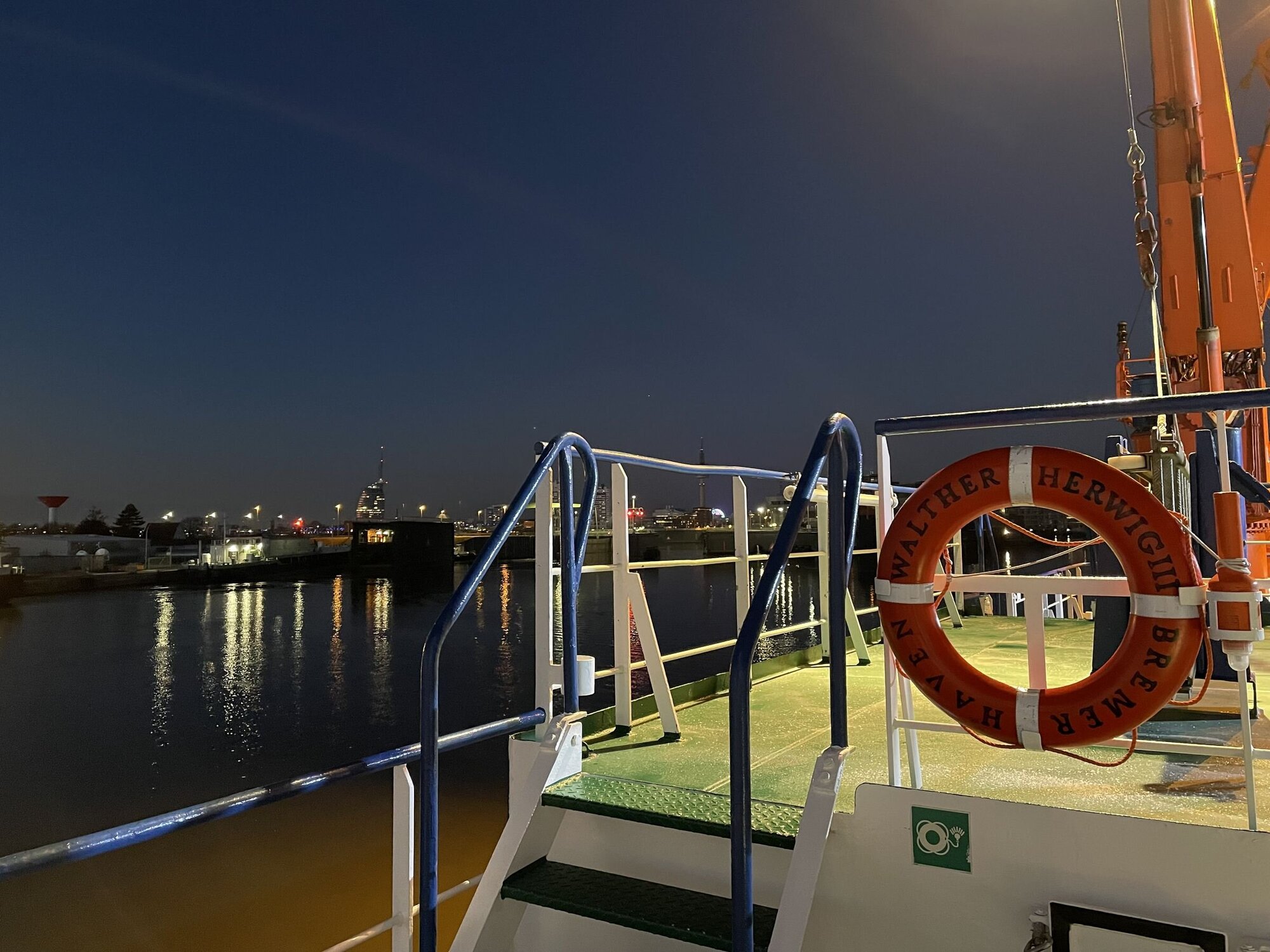 Ein grauer, regnerischer Tag in Bremerhaven: Fast verlassen lag die Walther Herwig III vor dem Thünen-Institut im trüben Hafenwasser. Noch hätte kein Beobachter geahnt, dass das Schiff innerhalb weniger Stunden beladen mit Wissenschaftlerinnen und Wissenschaftlern sowie Tonnen von Gepäck und wissenschaftlicher Ausrüstung auslaufen würde. Dennoch, die 462. Reise der Walther Herwig stand unmittelbar bevor. Schnell hatten wir das Schiff aufgerüstet, mussten nur noch – unabdingbar in Corona-Zeiten – auf die Ergebnisse der PCR-Tests warten und waren um 16 Uhr in der Schleuse angemeldet. Da wir uns zuvor alle vorsichtig verhalten hatten, gab es kein einziges positives Ergebnis.