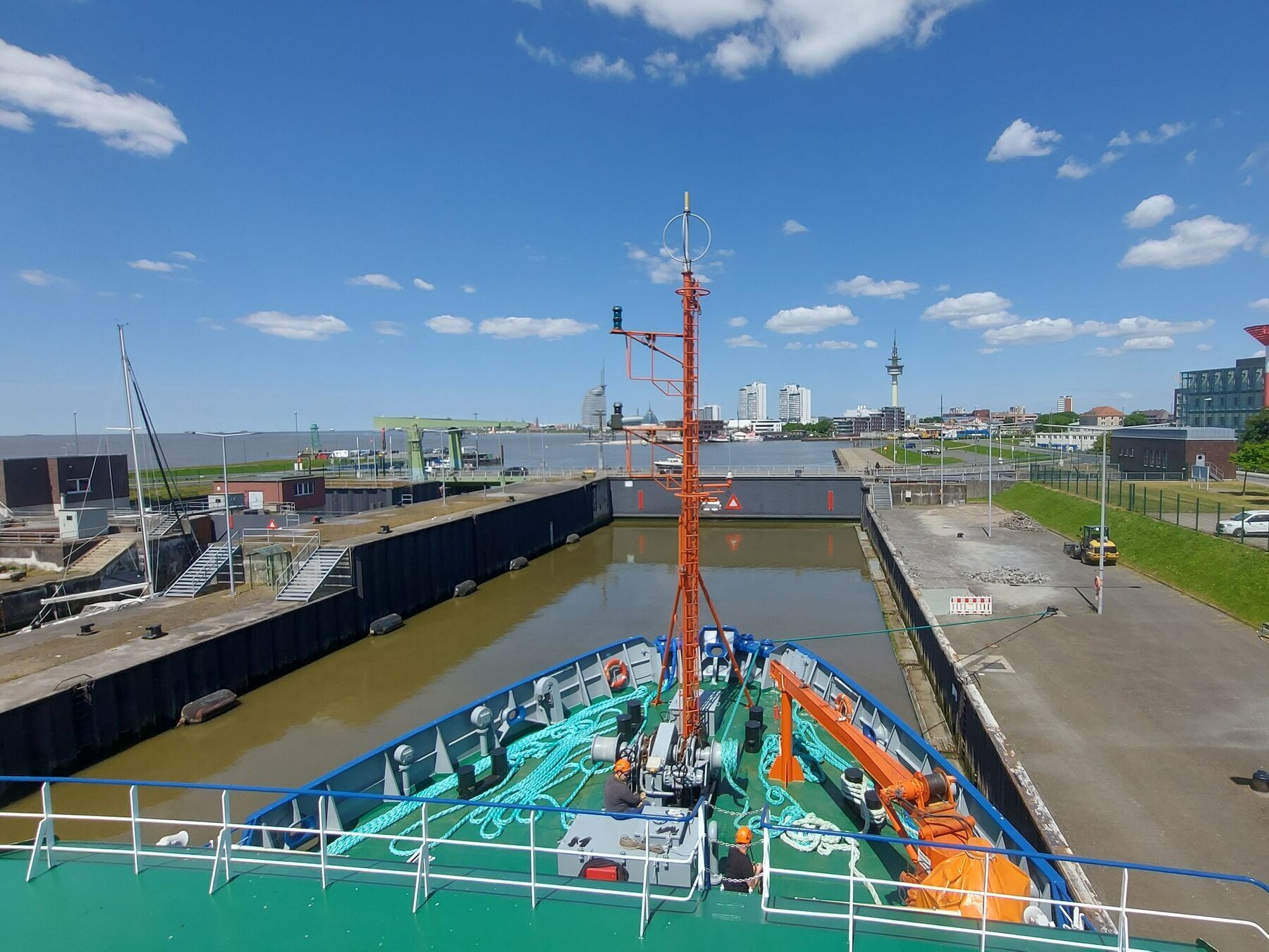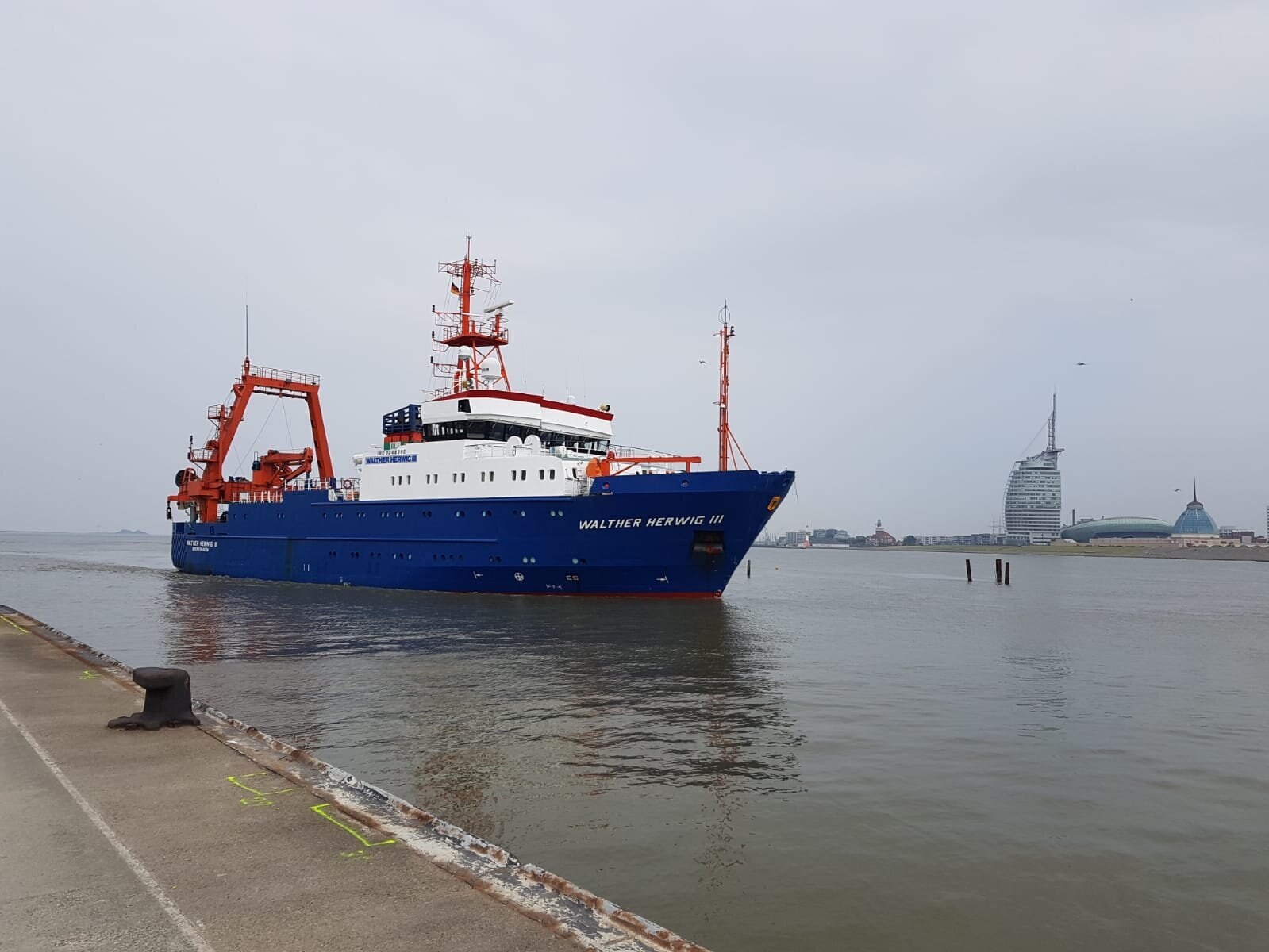 Pünktlich auf die Minute heißt es am 3. Juni „Leinen los!“, und die Walther Herwig verlässt den Liegeplatz am Thünen-Institut in Bremerhaven Richtung Island. Hier sollen weiteres wissenschaftliches Personal und ein Koch der Besatzung an Bord kommen. Nur die Schleuse im Fischereihafen trennt uns vom offenen Ozean. Nachdem auch diese überwunden ist, geht es endlich auf eine spannende Forschungsreise in eisige Regionen des Nordens.