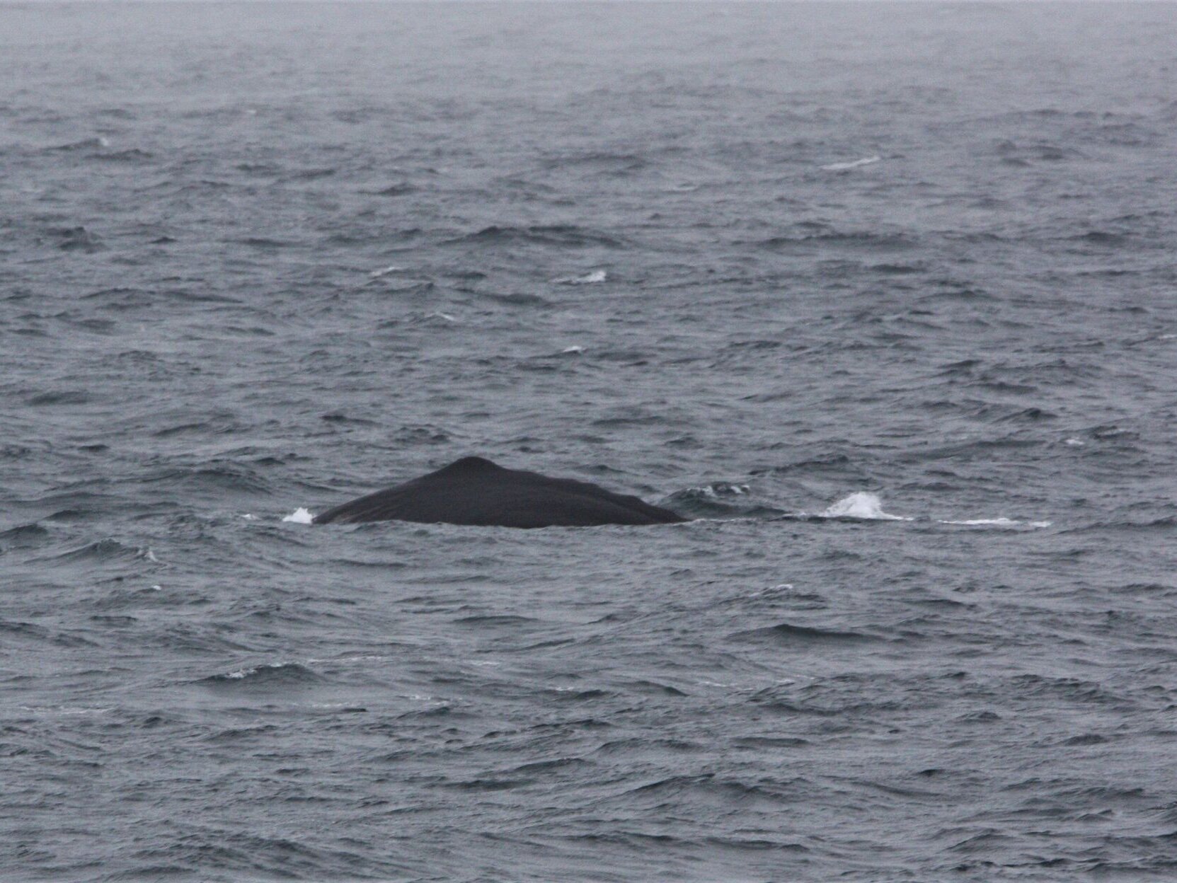 Regelmäßige Begleiter während der Reise sind Wale, wovon es hier zu dieser Jahreszeit besonders viele gibt. Um einen günstigen Blick zu erhaschen, muss man allerdings immer zur rechten Zeit am rechten Ort sein. Anscheinend haben da manche mehr Glück als andere…