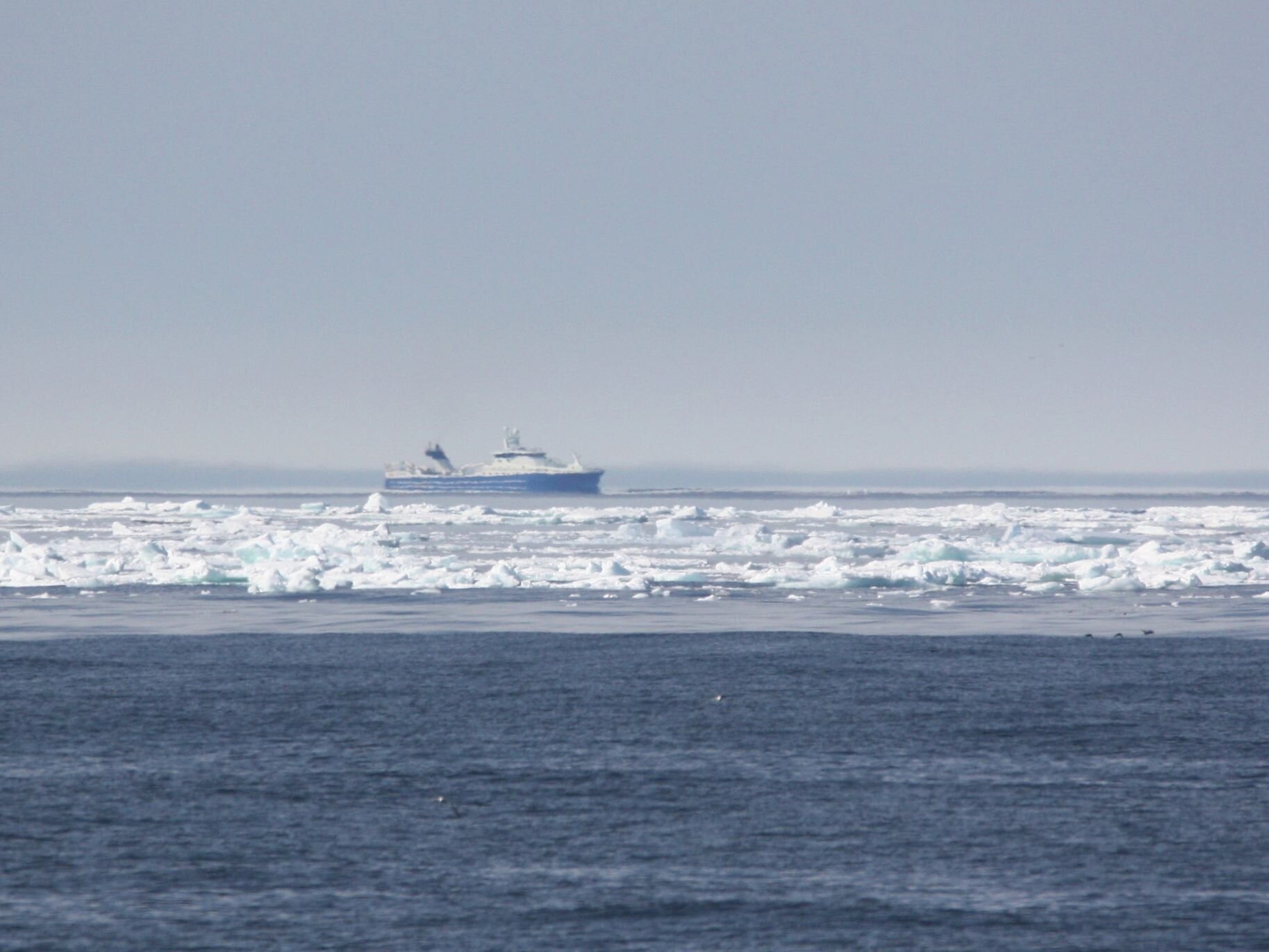 Wir halten Kurs auf Grönland, unser erstes Ziel ist die Dohrnbank zwischen Island und Grönland. Dieses Gebiet ist bekannt für seinen Fischreichtum. Leider folgen zunächst schlechte Nachrichten: Eine dicke Schicht Packeis bedeckt große Teile der Dohrnbank. Das macht das Arbeiten gefährlich.
