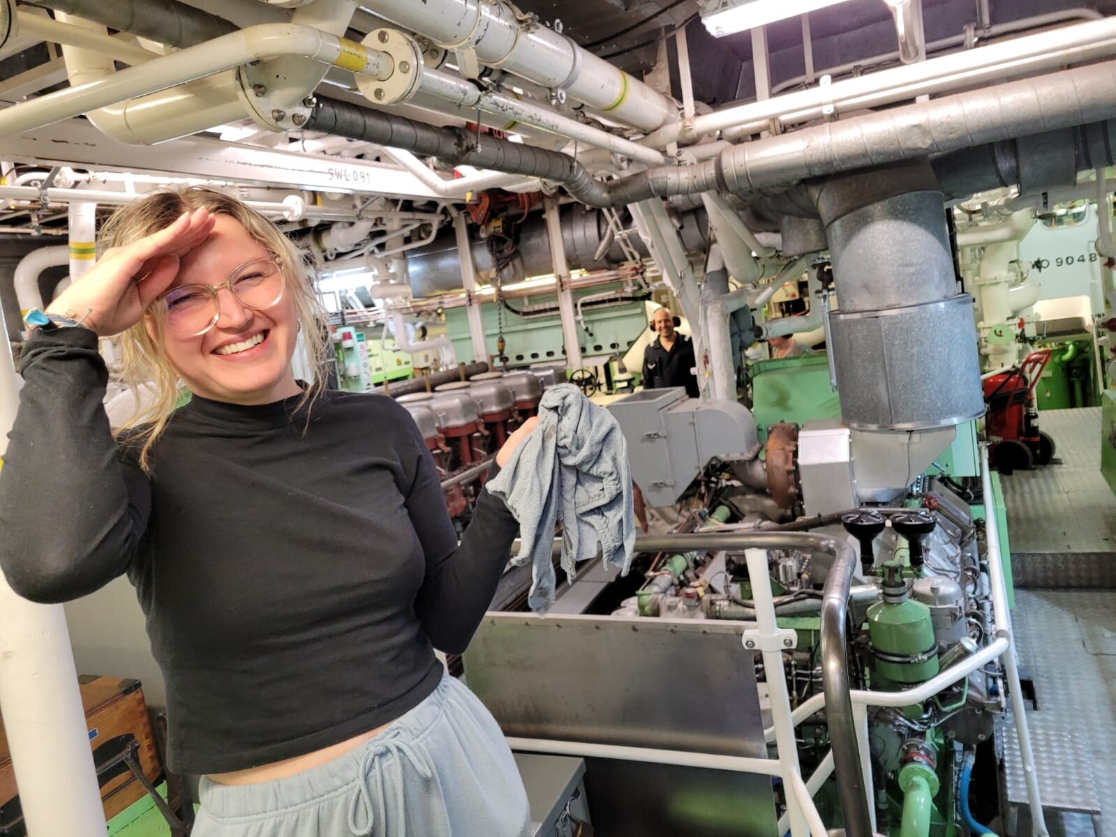Bei tollem Wetter halten wir Kurs auf Reykjavik. Bei so einer Überfahrt hat auch die Wissenschaft viel zu tun; wir treffen uns jeden Morgen nach dem Frühstück und bereiten das Labor vor. Alles will später ordentlich dokumentiert und protokolliert werden! Wir bauen Laborgeräte auf und sprechen die Abläufe durch. Wir machen Sicherheitsübungen und für die Interessierten gibt es eine Führung im Maschinenraum. Unsere Gruppe hat Zeit sich kennenzulernen. Erstmal sind wir zu siebt, in Reykjavik kommt dann der Fahrtleiter und eine weitere Wissenschaftlerin an Bord. Die nächsten drei bis vier Wochen werden wir zusammenarbeiten und -leben.