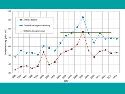 Der jährliche Holzeinschlag ist die zentrale Größe zur Nutzung der Ressource Holz und damit eine wesentliche Kennzahl für die Beurteilung von Nachhaltigkeit und für die Abschätzung ungenutzter Rohholzpotenziale. Zusätzlich ermitteln wir u.a. über diese Größe die Kohlenstoffspeicherung in Wald und Holz. Die amtliche Einschlagstatistik unterschätzt den tatsächlichen Einschlag erheblich (siehe Abbildung oben).