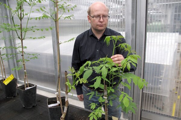 Ein aussichtsreicher Weg basiert auf der Beobachtung, dass in stark befallenen Beständen immer wieder Bäume auftreten, die gesund bleiben. Und wir vermuten, dass diese Resistenz erblich bedingt ist. Deshalb haben wir resistente Eschen selektiert, durch Pfropfung vermehrt und in Samenplantagen gepflanzt. Und die Hoffnung ist, dass diese Bäume dann Saatgut mit erhöhter Resistenz gegenüber dem Eschentriebsterben produzieren.