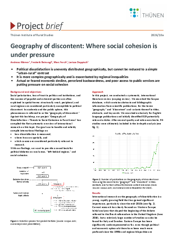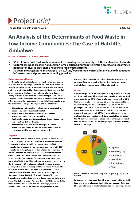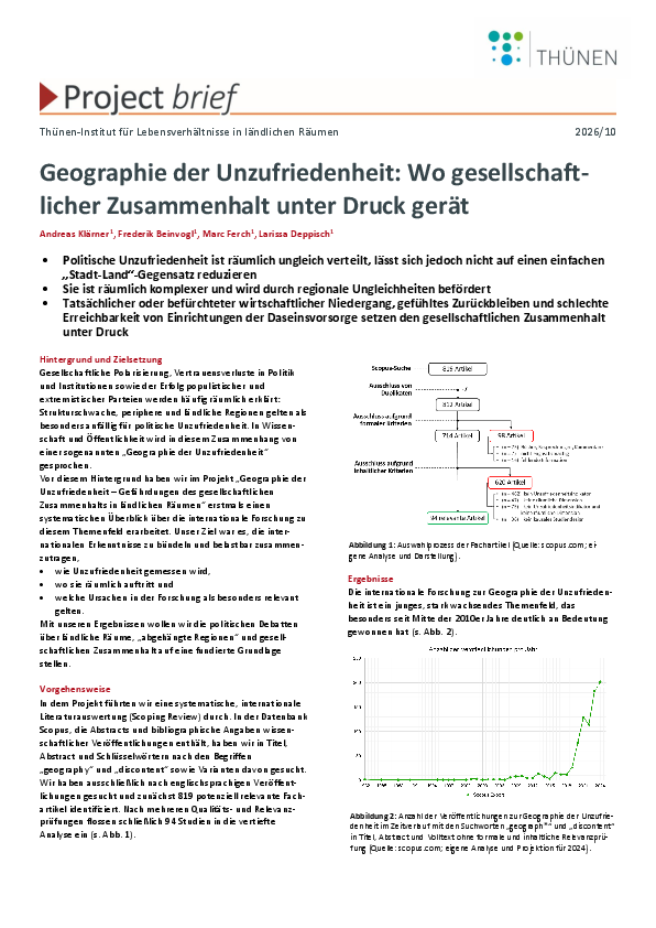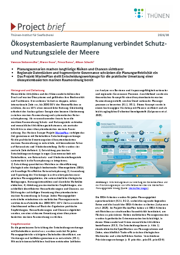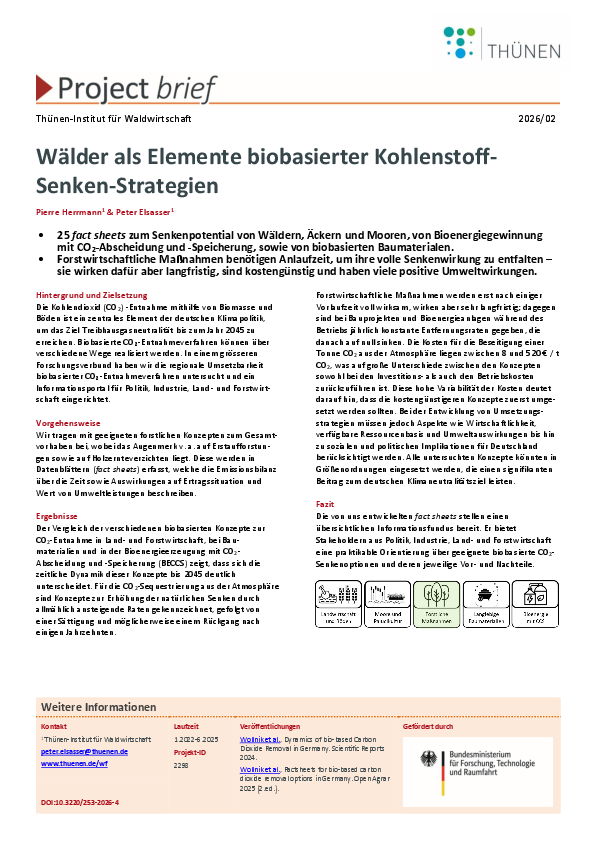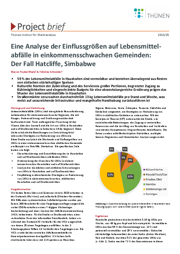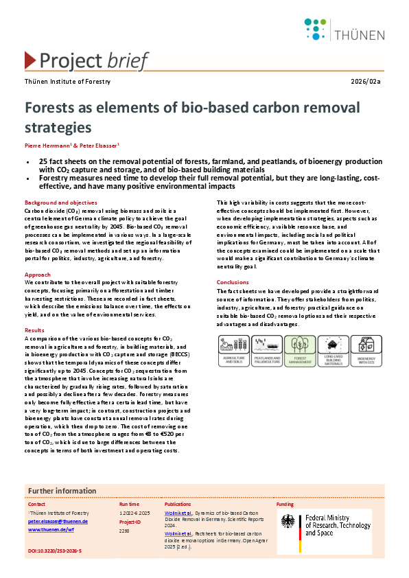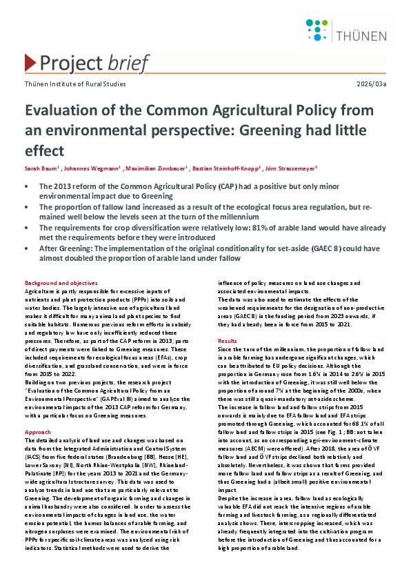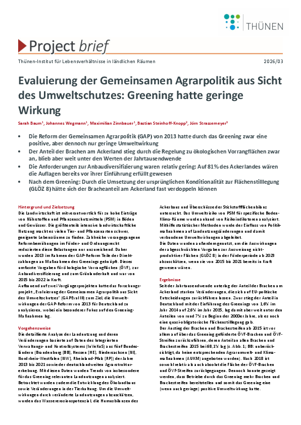 In der Reihe Project brief werden Ergebnisse aus der aktuellen Forschungsarbeit der Thünen-Fachinstitute kompakt als Ein- oder Zweiseiter dargestellt. Ein Project brief erscheint mit dem Abschluss eines Thünen-Forschungsprojekts. Die Sprache der Beiträge ist überwiegend deutsch und englisch.
