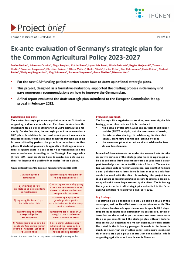 Ex-ante-Bewertung des deutschen Strategieplans für die Gemeinsame Agrarpolitik 2023-2027