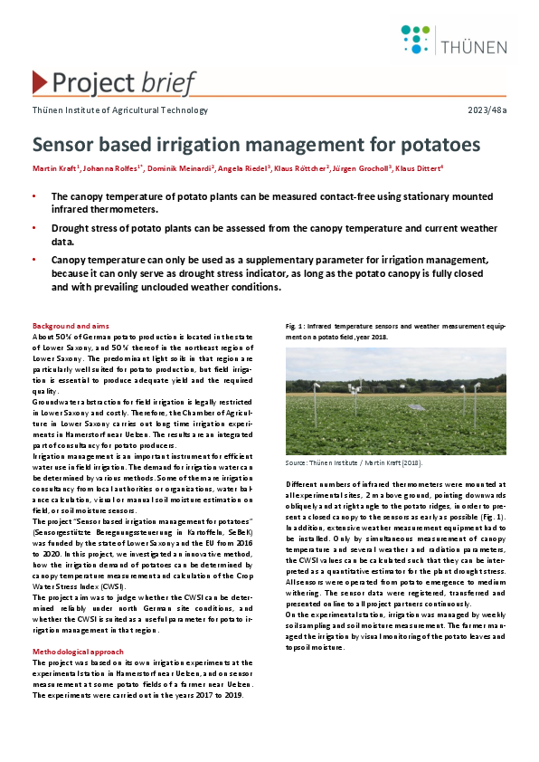 Sensorgestützte Beregnungssteuerung von Kartoffeln (SeBeK)