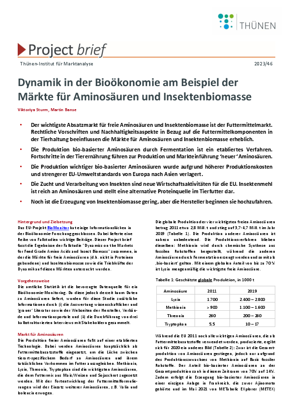 Dynamik in der Bioökonomie am Beispiel der Märkte für Aminosäuren und Insektenbiomasse
