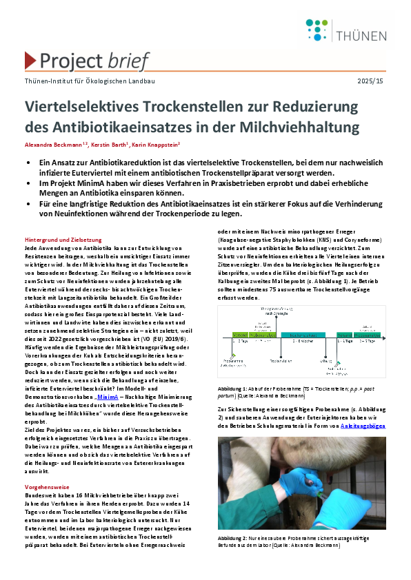 Viertelselektives Trockenstellen zur Reduzierung des Antibiotikaeinsatzes in der Milchviehhaltung