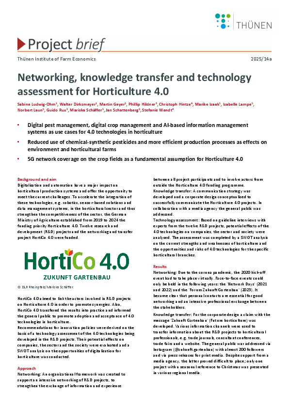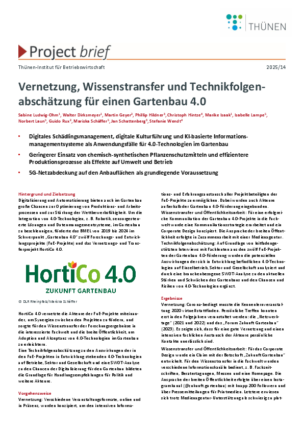 Vernetzung, Wissenstransfer und Technikfolgen-abschätzung für einen Gartenbau 4.0
