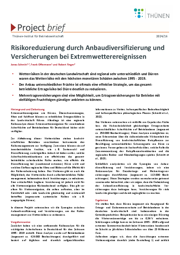 Risikoreduzierung durch Anbaudiversifizierung und Versicherungen bei Extremwetterereignissen