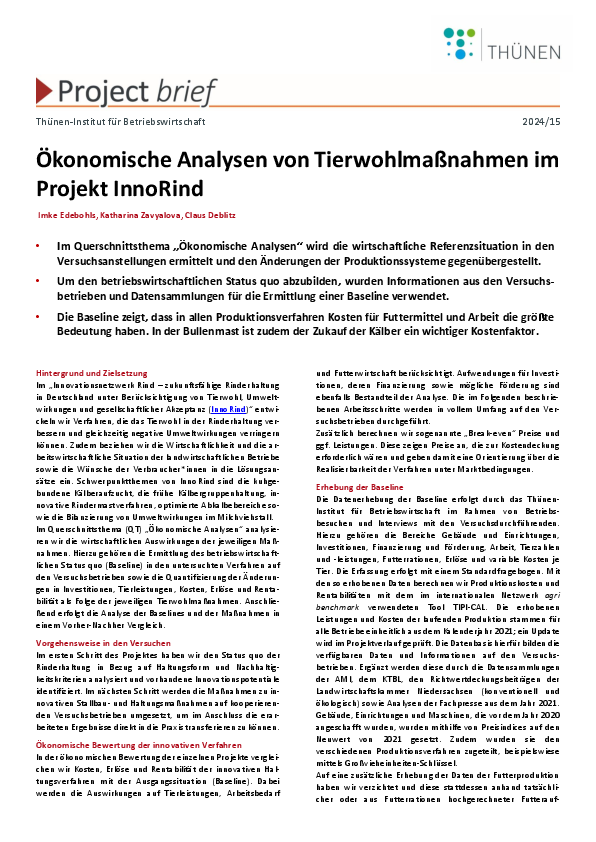 Ökonomische Analysen von Tierwohlmaßnahmen im Projekt InnoRind