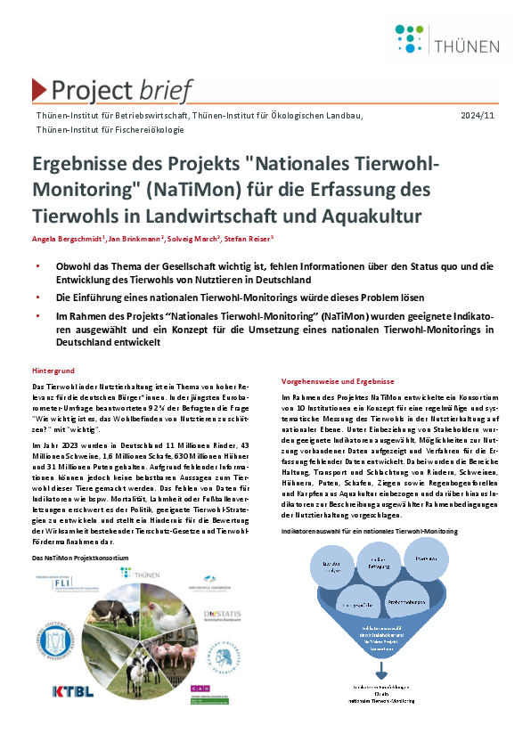 Ergebnisse des Projekts "Nationales Tierwohl- Monitoring" (NaTiMon) für die Erfassung des Tierwohls in Landwirtschaft und Aquakultur