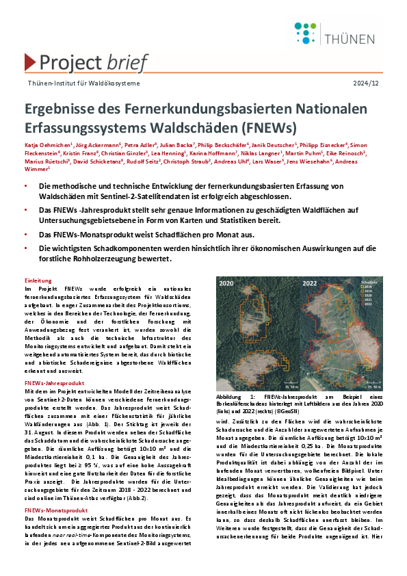 Ergebnisse des Fernerkundungsbasierten Nationalen Erfassungssystems Waldschäden (FNEWs)