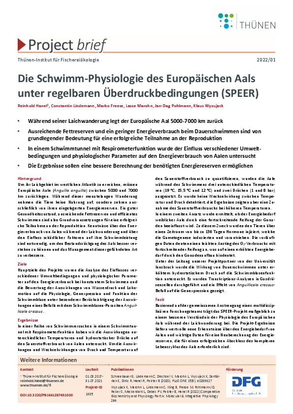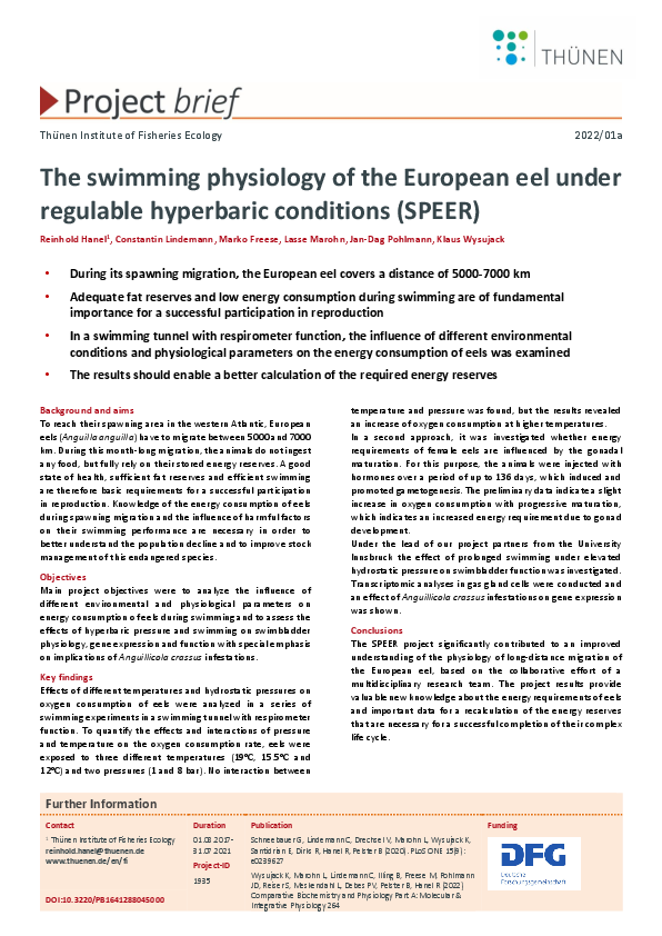 Die Schwimm-Physiologie des Europäischen Aals unter regelbaren Überdruckbedingungen (SPEER)