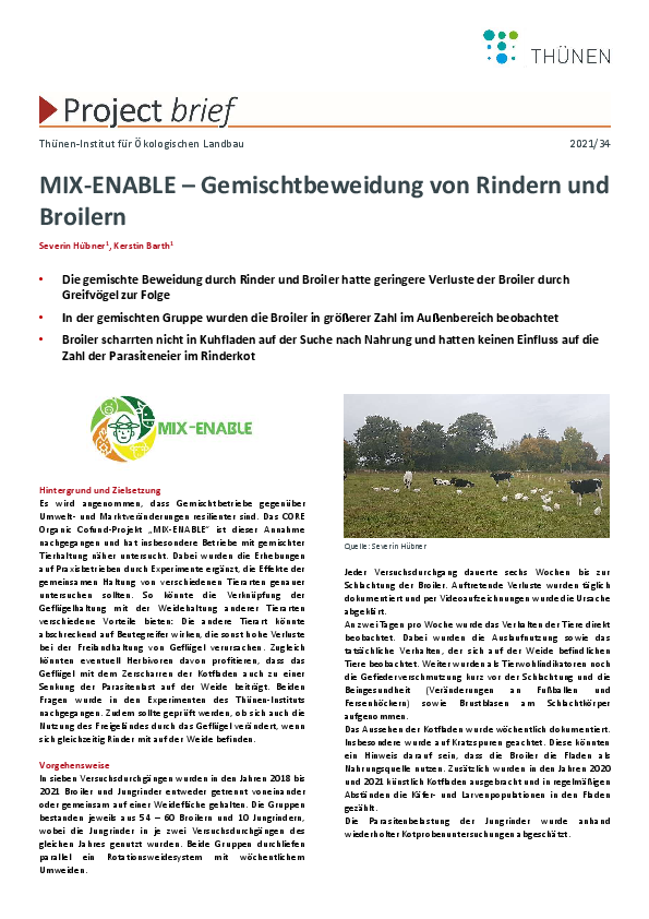 MIX-ENABLE – Gemischtbeweidung von Rindern und Broilern