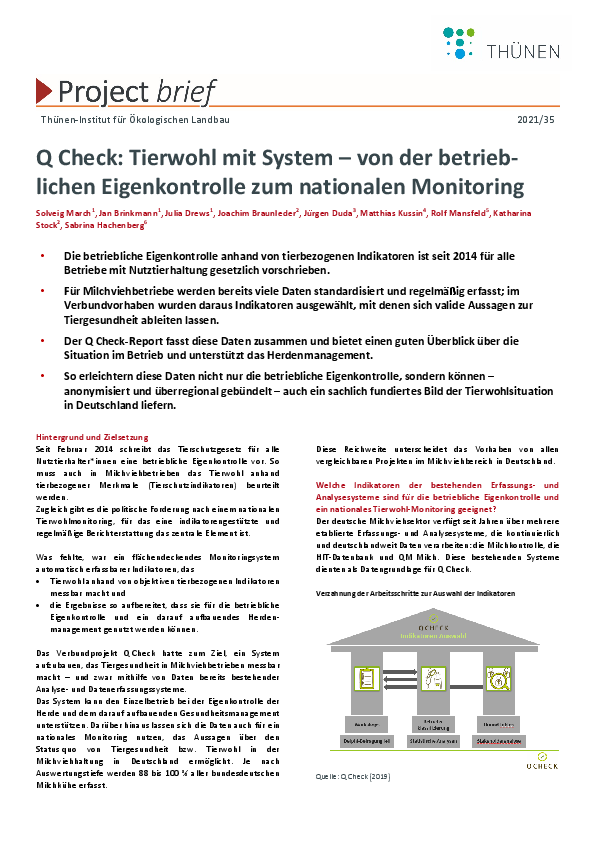 Q Check: Tierwohl mit System – von der betrieblichen Eigenkontrolle zum nationalen Monitoring