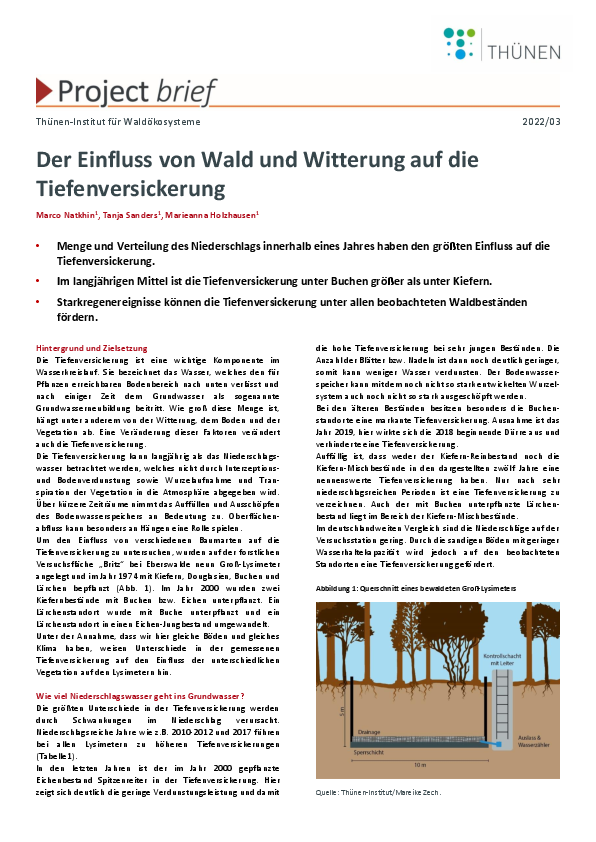 Der Einfluss von Wald und Witterung auf die Tiefenversickerung