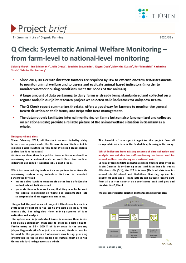 Q Check: Systematic Animal Welfare Monitoring – from farm-level to national-level monitoring