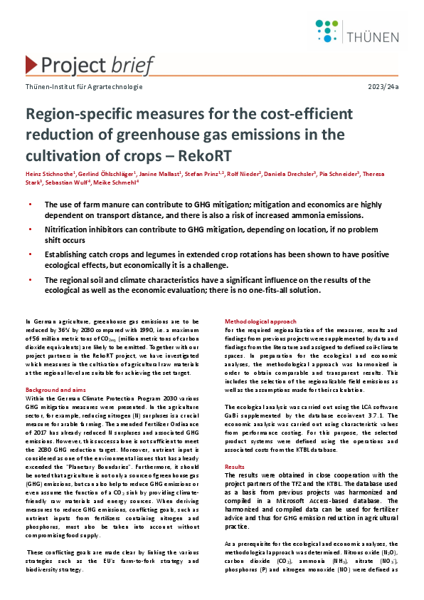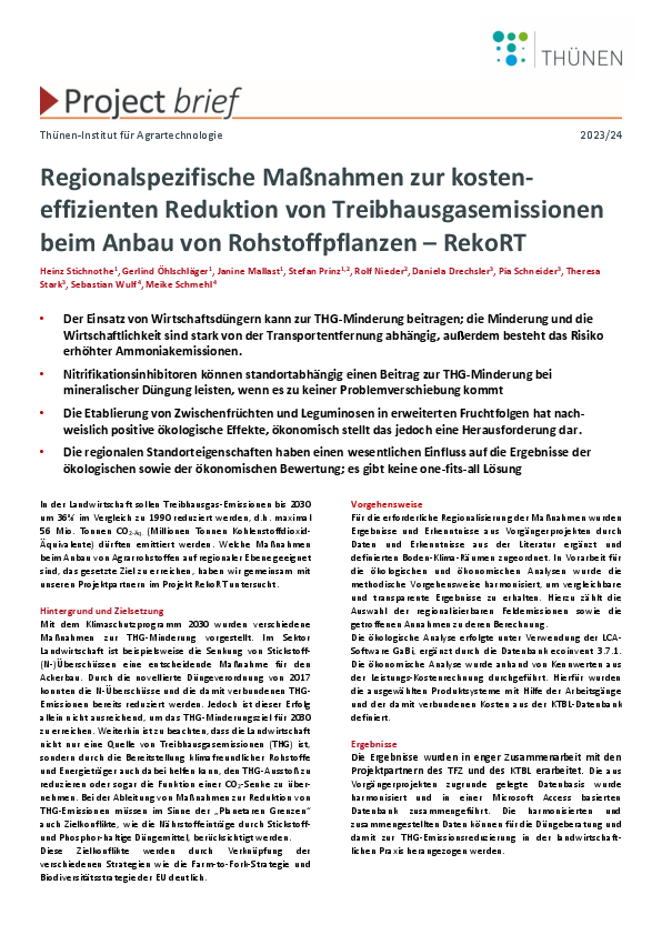 Regionalspezifische Maßnahmen zur kosten-effizienten Reduktion von Treibhausgasemissionen beim Anbau von Rohstoffpflanzen – RekoRT