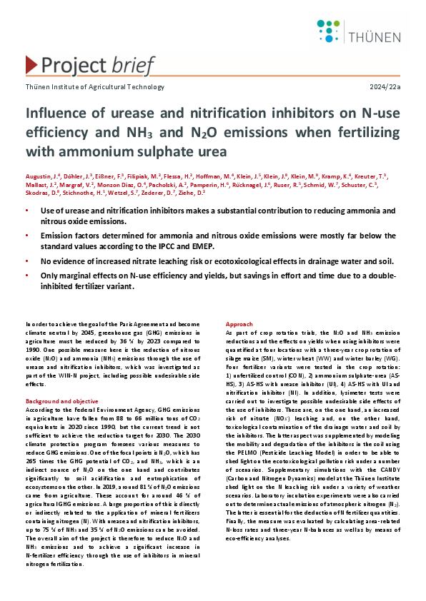 Einfluss von Urease- und Nitrifikationsinhibitoren auf N-Nutzungseffizienz sowie NH3- und N2O-Emissionen bei der Düngung mit Ammoniumsulfat-Harnstoff