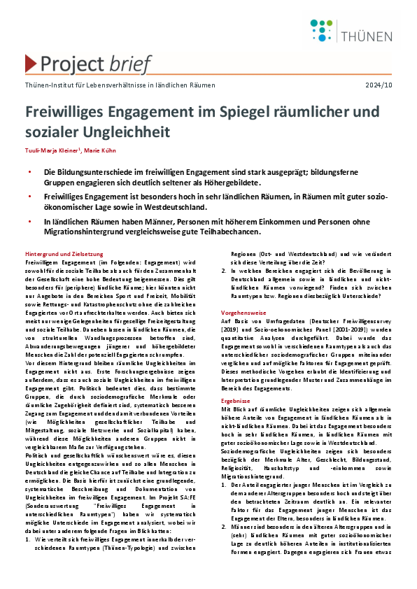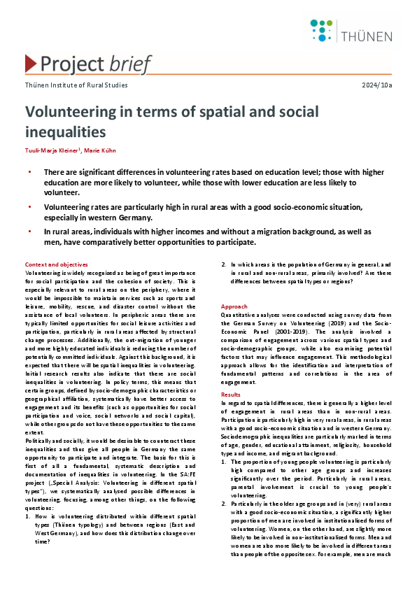 Freiwilliges Engagement im Spiegel räumlicher und sozialer Ungleichheit