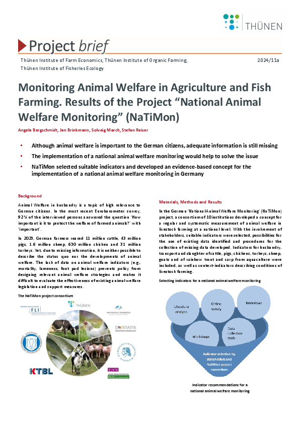 Monitoring Animal Welfare in Agriculture and Fish Farming. Results of the Project “National Animal Welfare Monitoring” (NaTiMon)