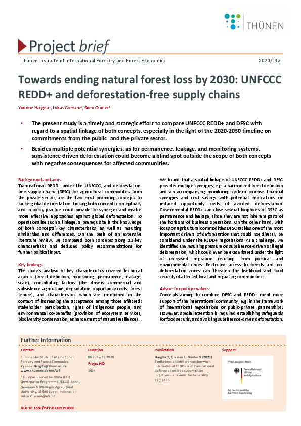 Towards ending natural forest loss by 2030: UNFCCC REDD+ and deforestation-free supply chains