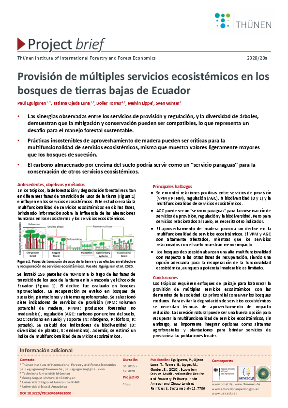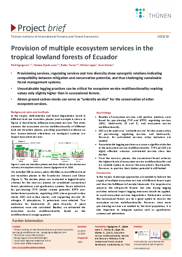 Provision of multiple ecosystem services in the tropical lowland forests of Ecuador