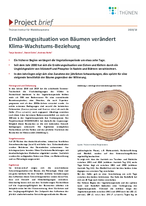 Ernährungssituation von Bäumen verändert Klima-Wachstums-Beziehung