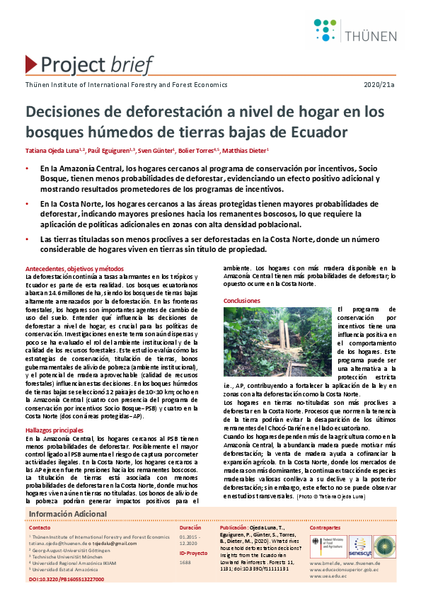 Decisiones de deforestación a nivel de hogar en los bosques húmedos de tierras bajas de Ecuador