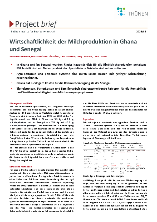 Wirtschaftlichkeit der Milchproduktion in Ghana und Senegal