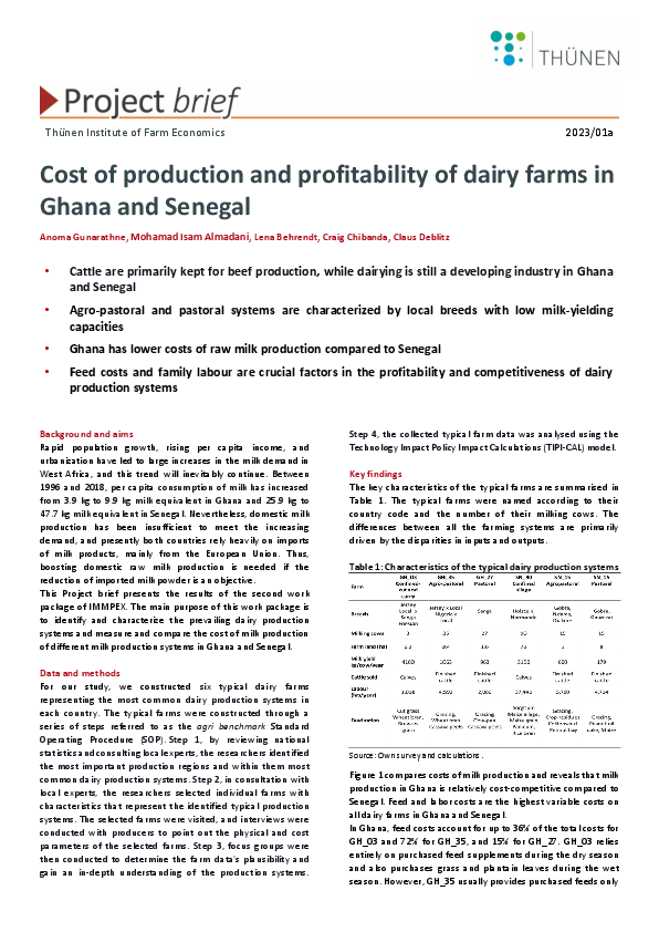 Cost of production and profitability of dairy farms in Ghana and Senegal