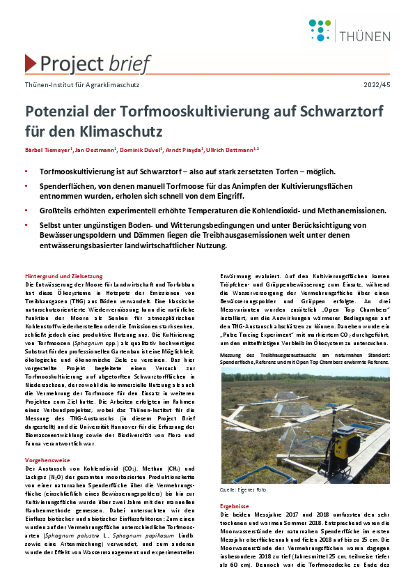 Potenzial der Torfmooskultivierung auf Schwarztorf für den Klimaschutz