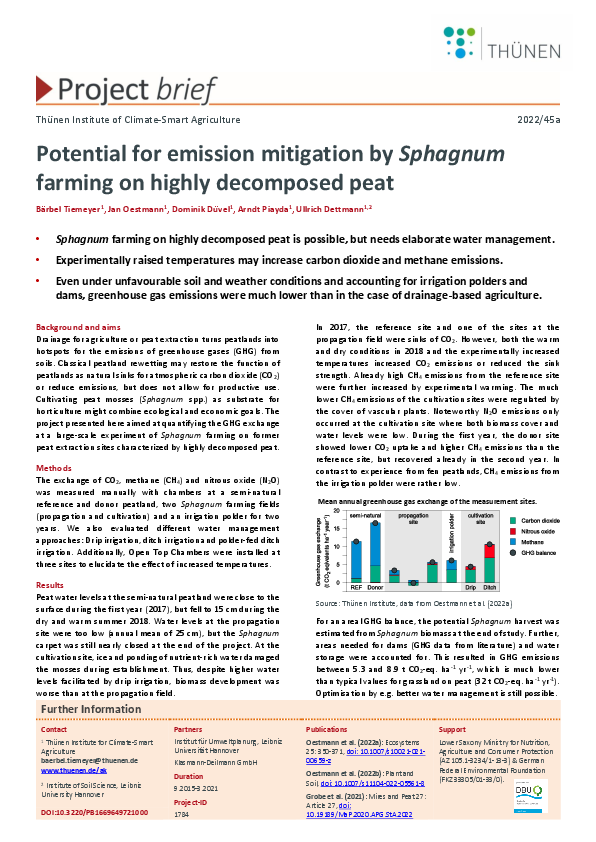 Potential for emission mitigation by Sphagnum farming on highly decomposed peat